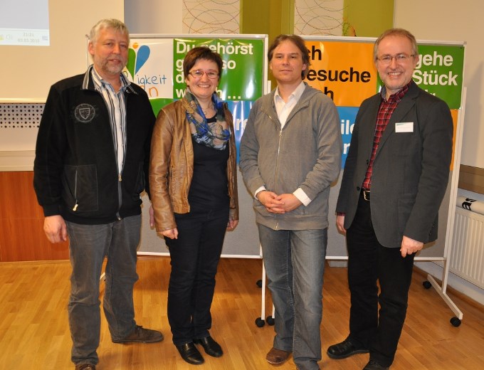 Foto: Chrisitan Köstler, Leiter PfarrCaritas der Diözese St. Pölten, St. Benedikt-Bildungshausleiterin Lucia Deinhofer, Referent Martin Schenk, St. Benedikt-Bildungshausleiter Johannes Deinhofer.