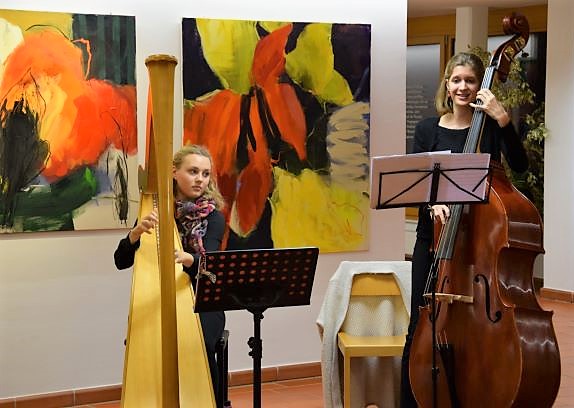 Jazzige Musik: Laura Hinterleitner, Harfe, Pia Dietl, Kontrabass, Gesang