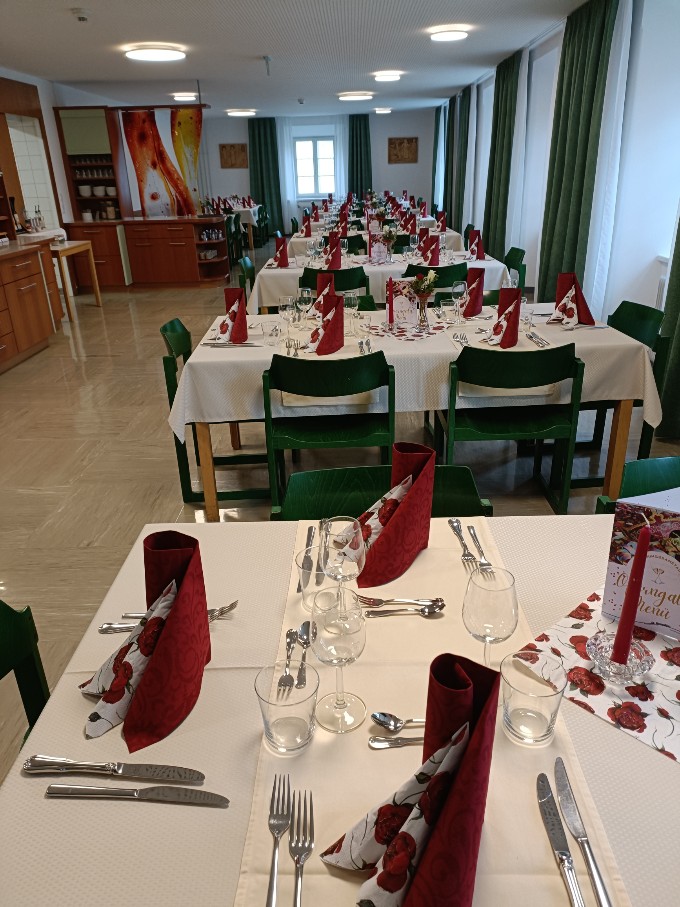 Speisesaal mit 54 Sitzplätzen und kleines Speisezimmer mit 20 Sitzplätzen.